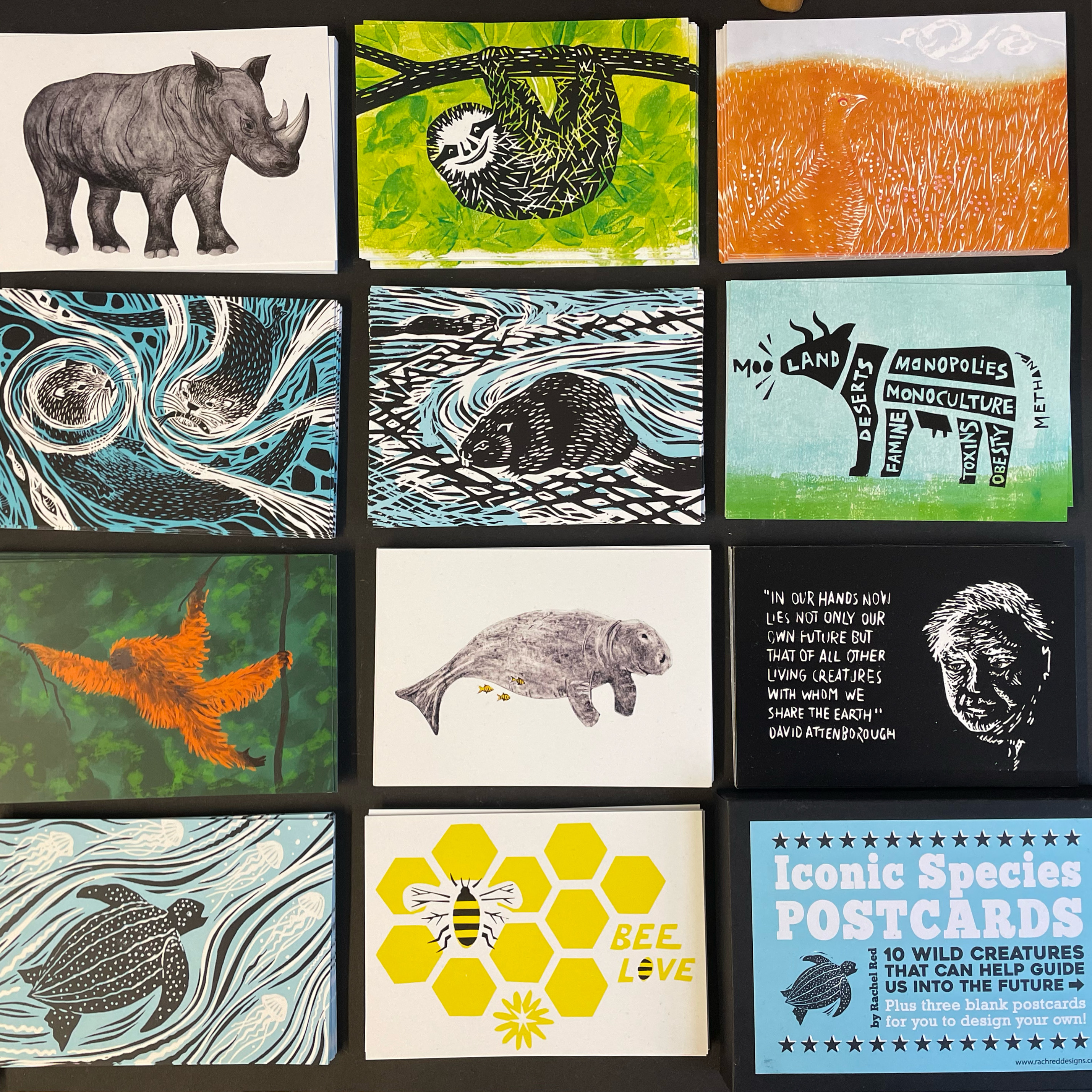 Iconic Species Box of Postcards £7.00A series of animals that have something to teach us for our future survival on planet earth. There are more in the pipeline. And this box includes 3 blank postcards so you can design some of your own. Enter Quantity Facebook LikeGoogle Plus OneTweet Widget